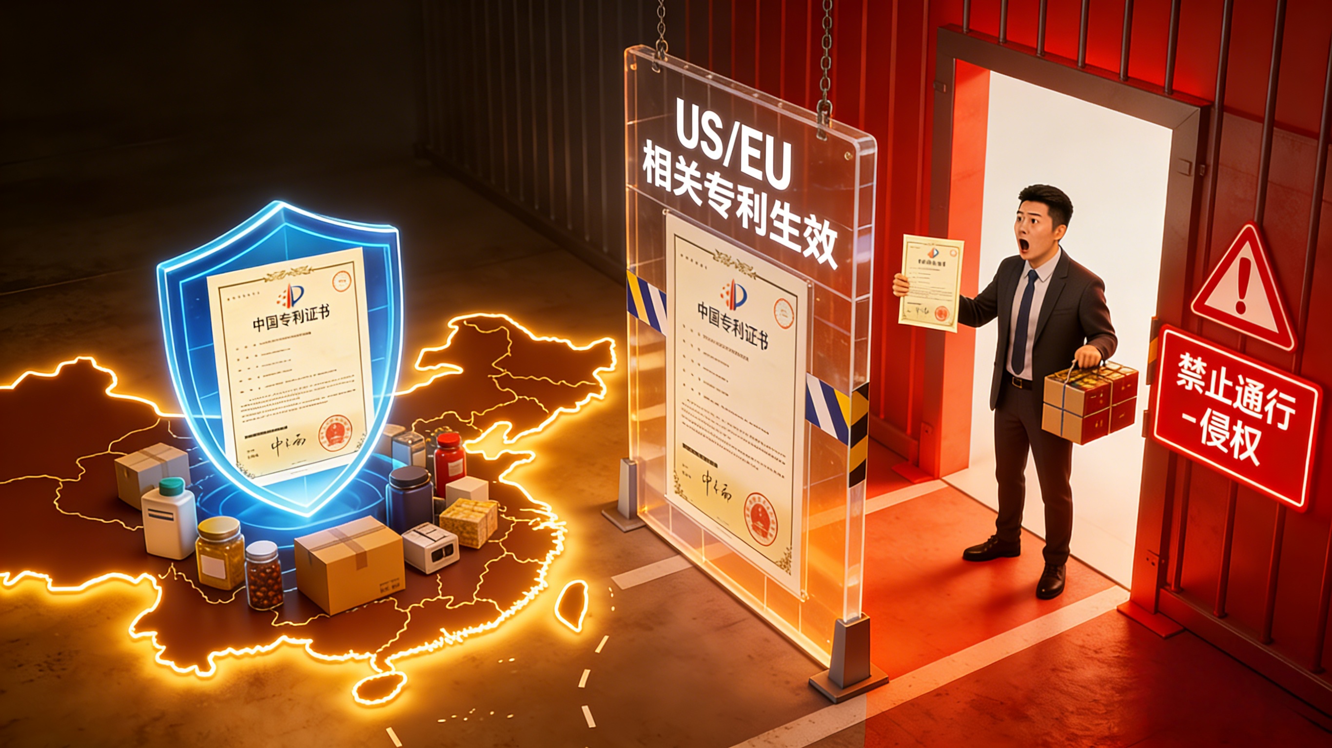 核心逻辑: 专利权具有严格的地域性。你在国内获得的专利,只在中国境内有效;到了美国、欧盟、东南亚,就是一纸空文。反之,别人在目标市场国拥有的专利,可以合法地将你的产品挡在门外。