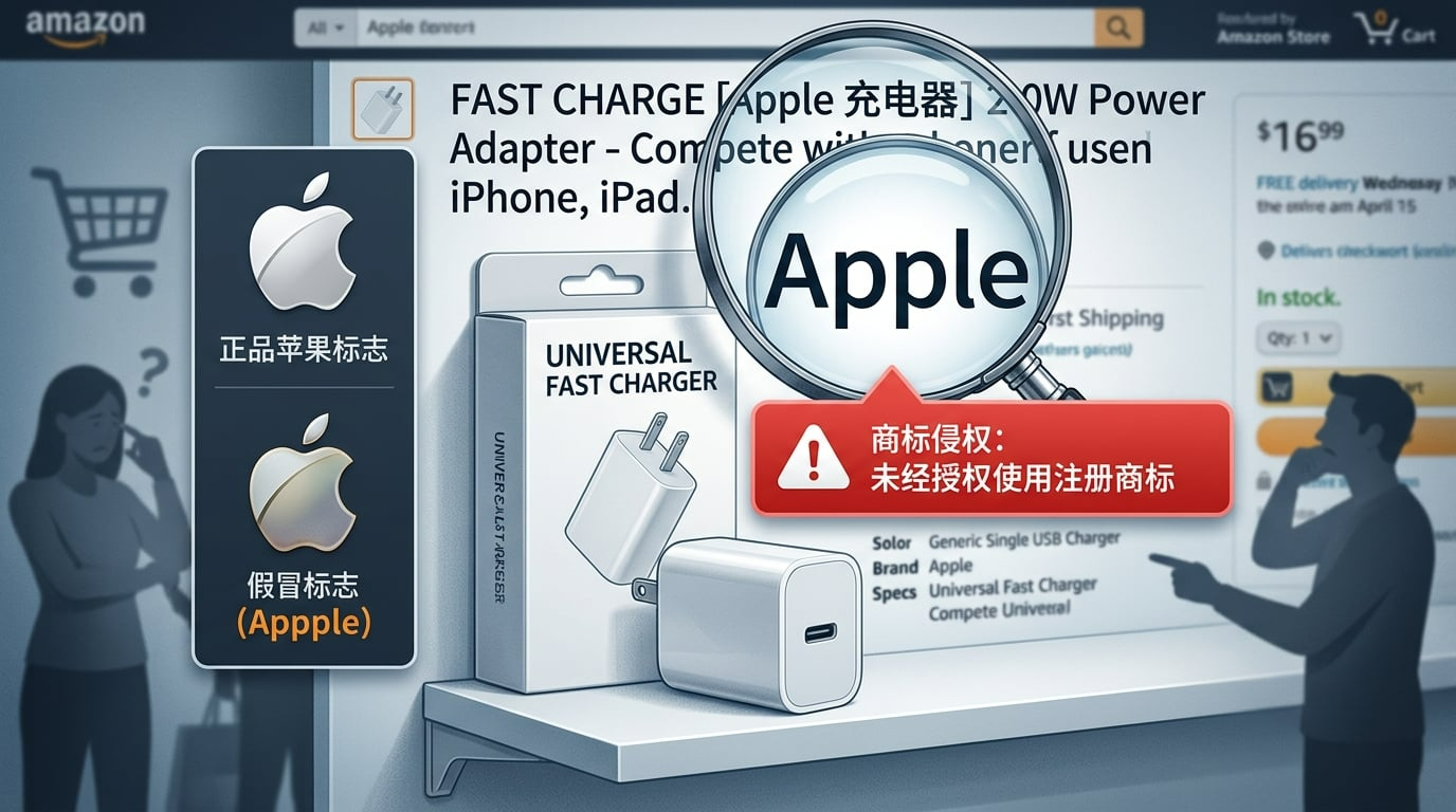 近似混淆:用“Amazn”“Adiddas”等近似拼写/图形,误导买家。