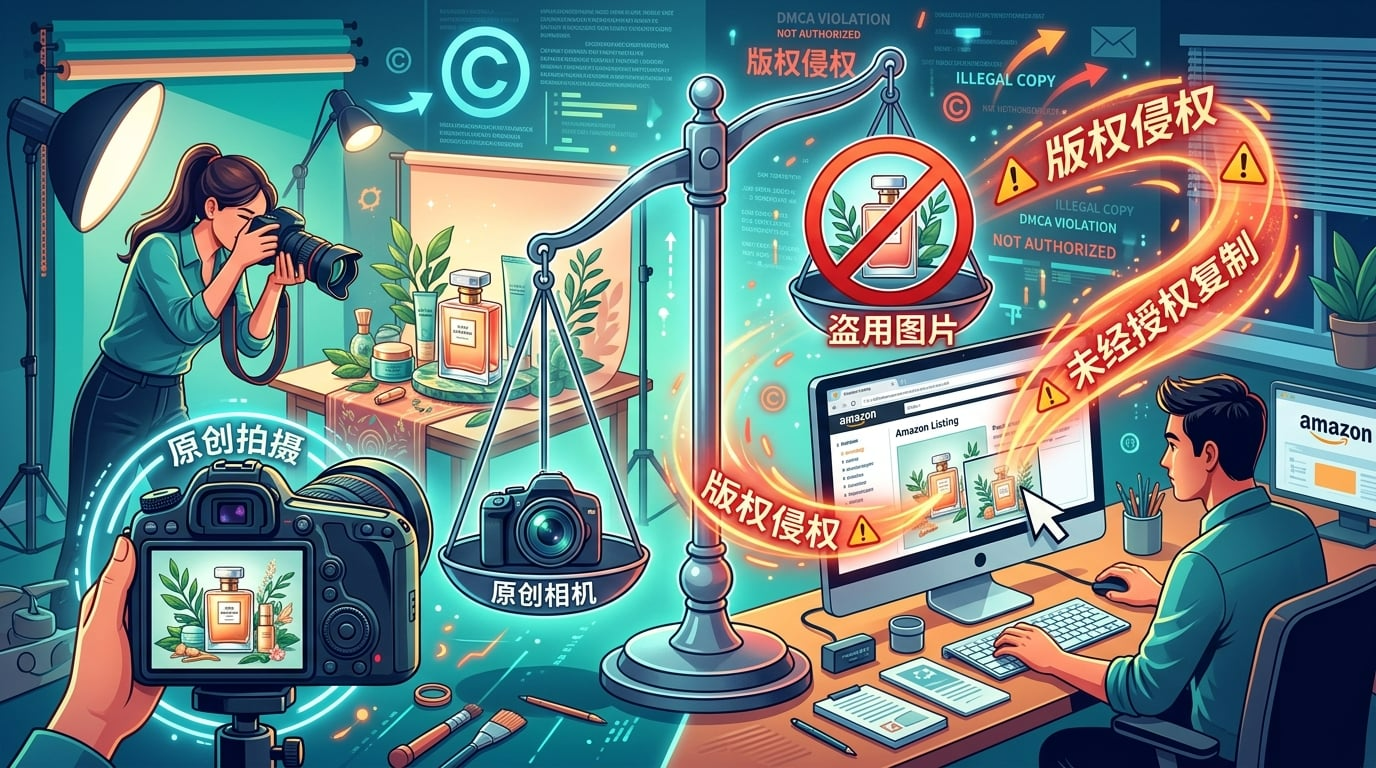抄文案:复制/改写Listing标题、五点、描述、品牌故事(实质性相似即侵权)。