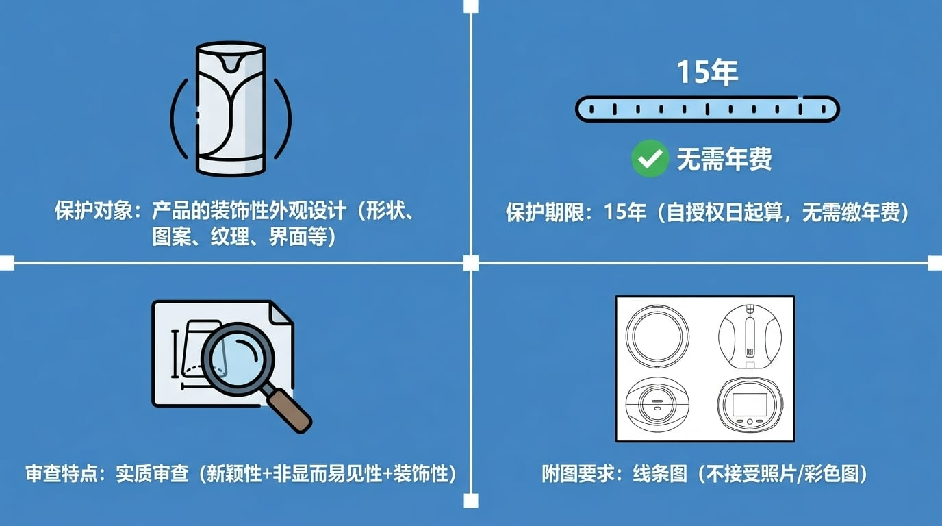 五、与中国外观专利的关键区别