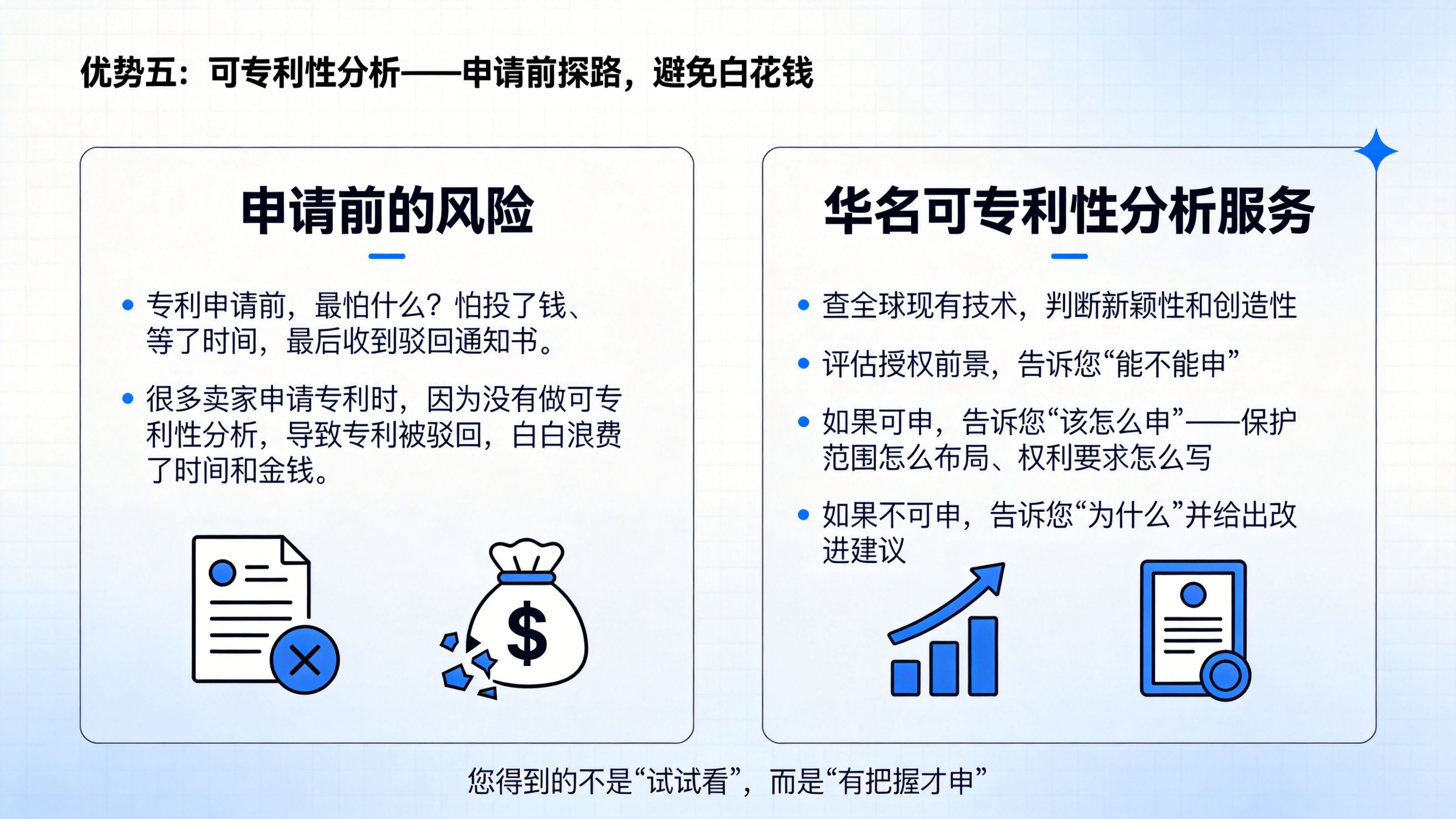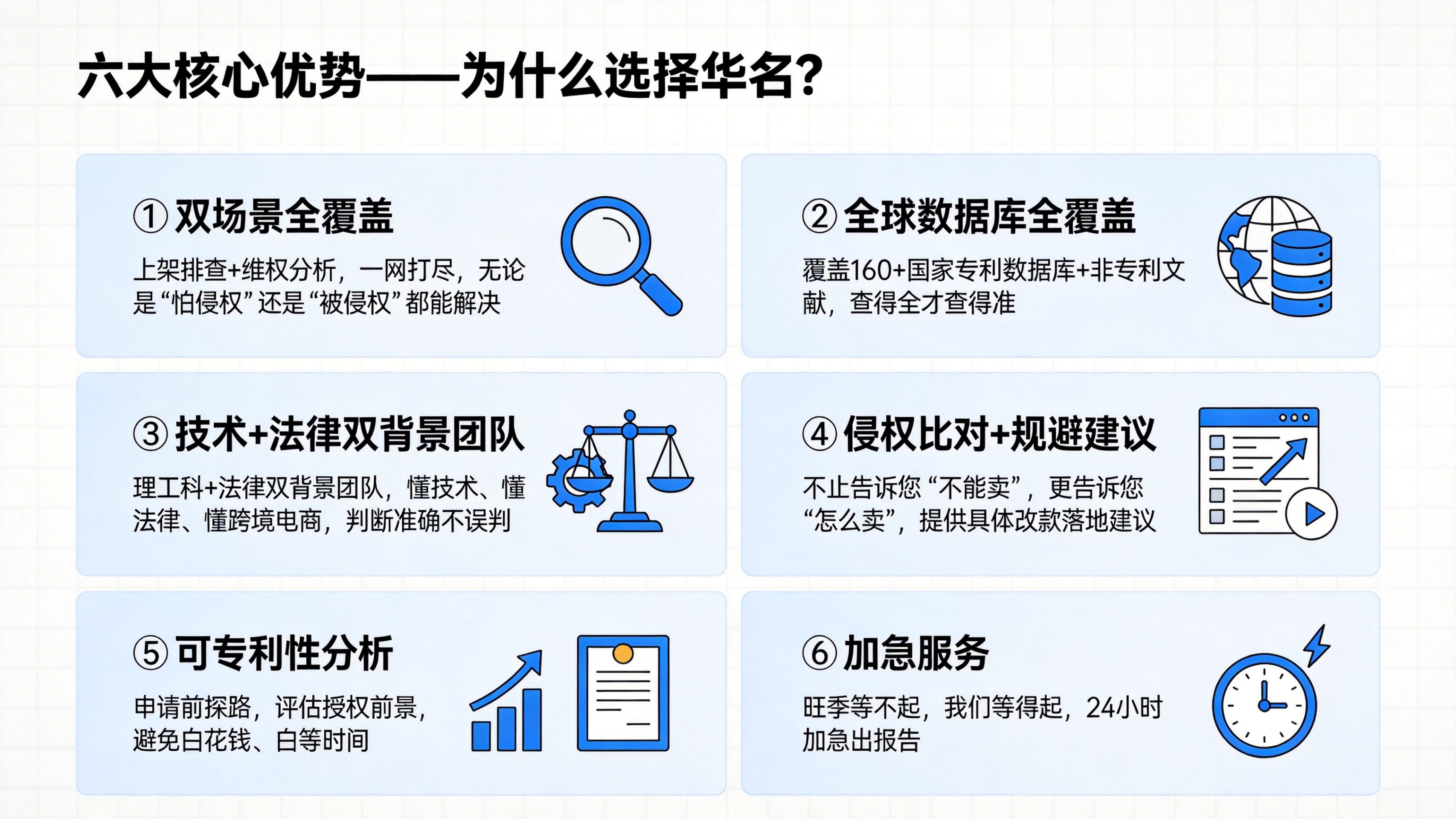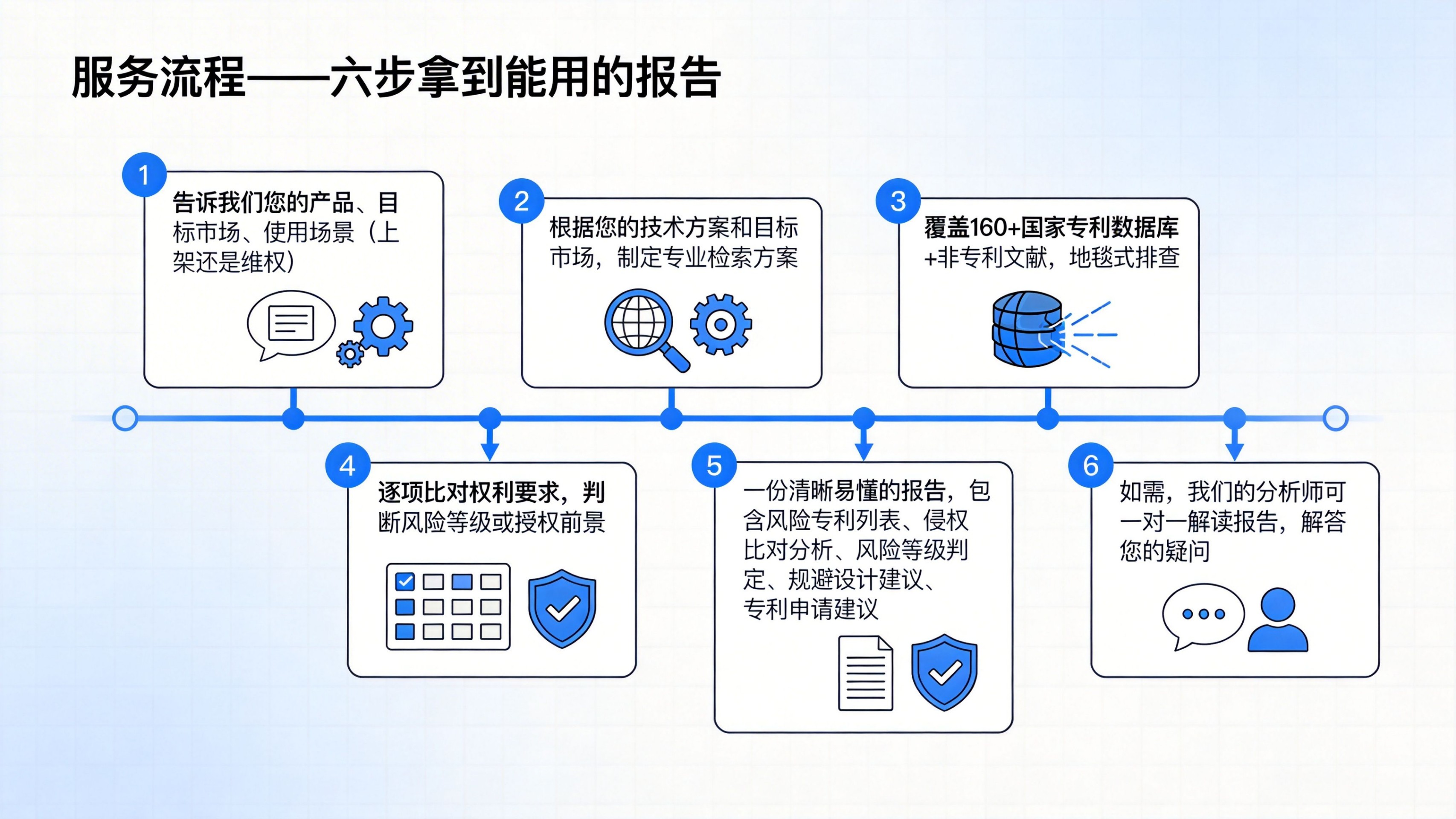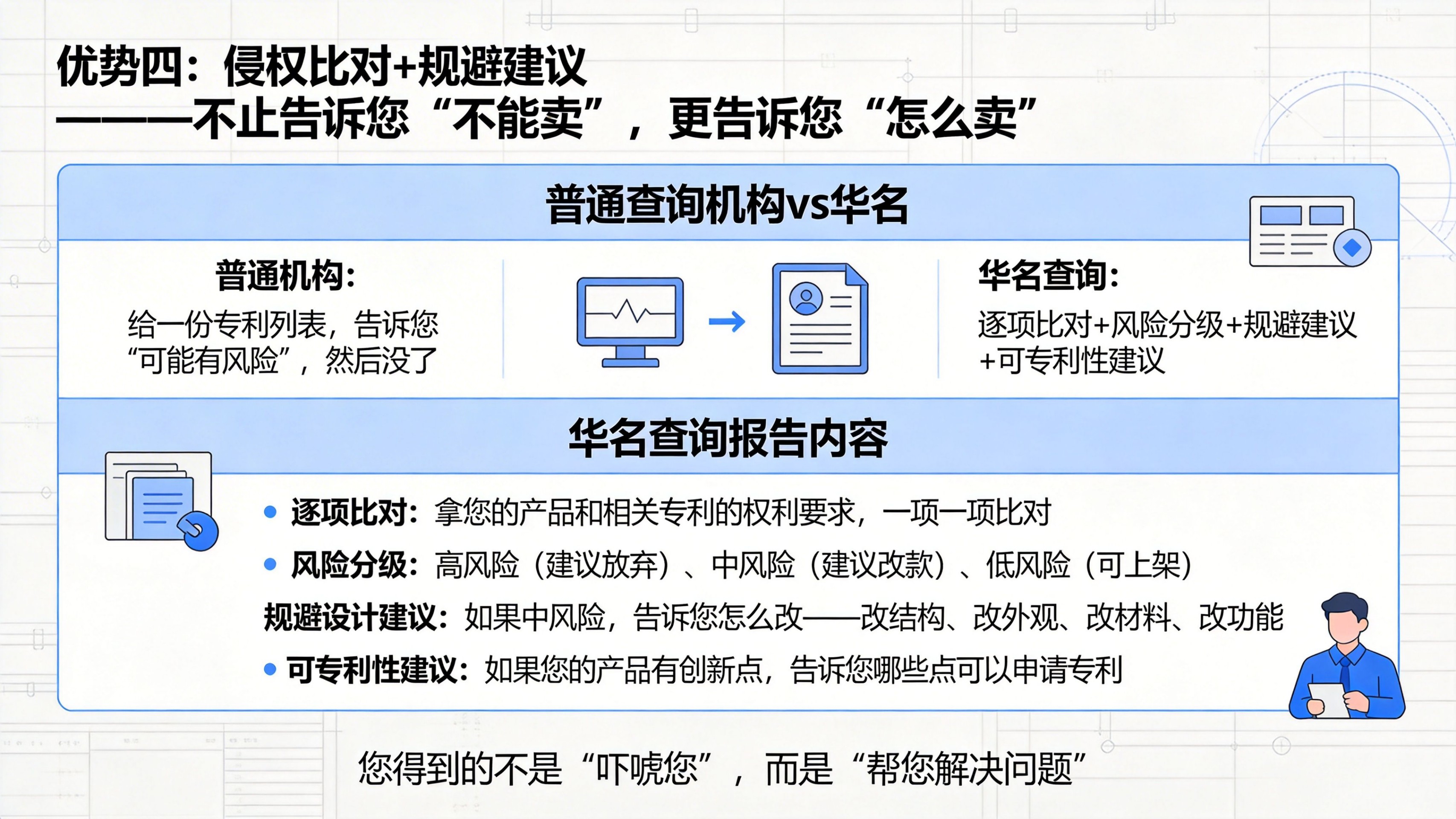 铺货前侵权排查:①新品上架前、铺货前、进入新市场前。②我的产品会侵犯别人的发明专利吗?③查目标市场有无相同/近似功能结构,评估侵权风险,给出上架建议。申请前冲突检索:①准备申请功能结构等发明专利前②我的设计与现有专利冲突吗?能授权吗?③查全球发明专利,评估授权前景,给出申请建议。注意:由于不可抗力,任何查询保证不了100%准确。该查询仅供参考,不作为权威鉴定。
