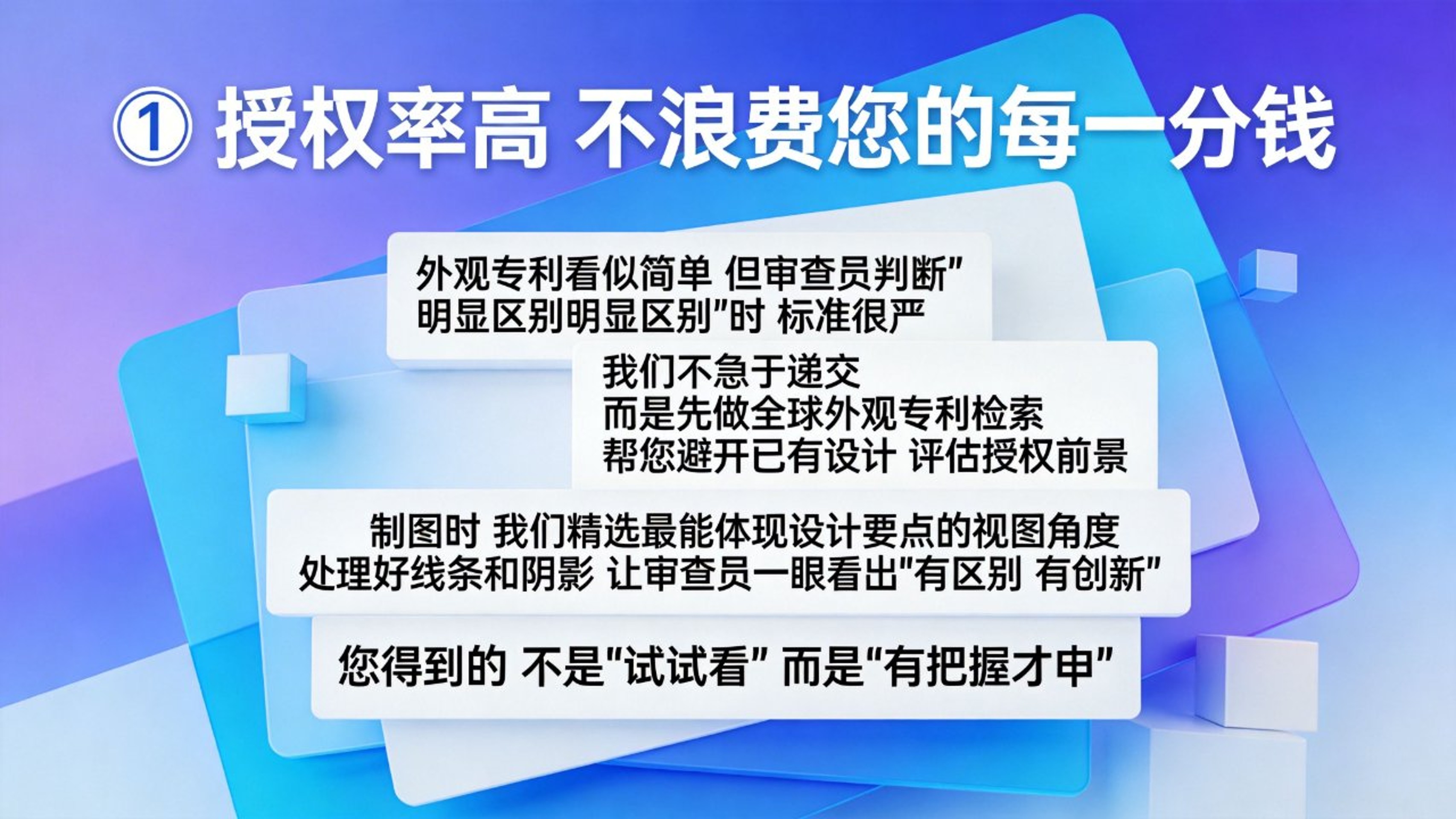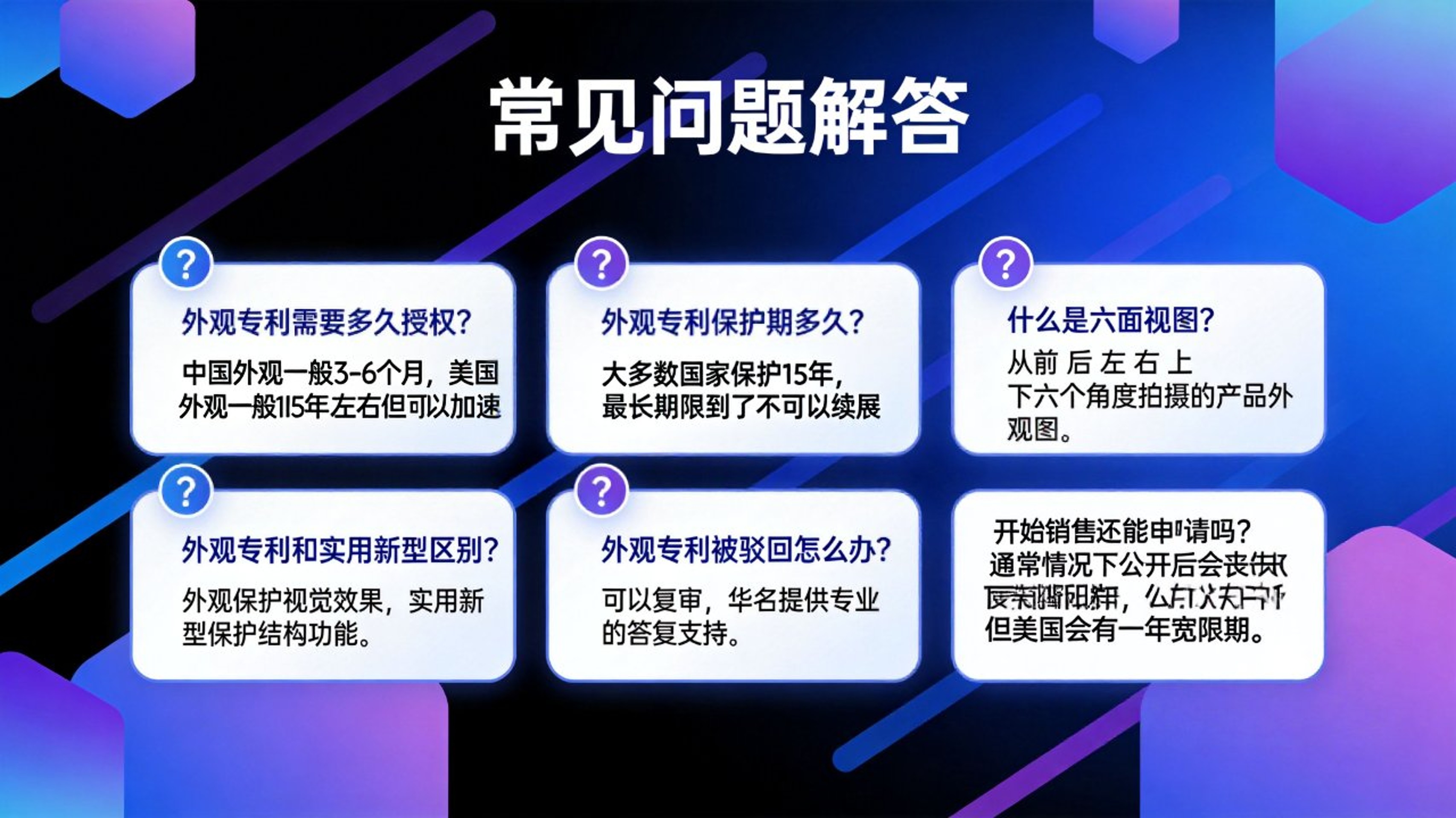 ●英国专利一般递交后1周左右下受理,1-2个月左右出结果,具体审查时效看审查员审查进度●英国外观专利实行登记制不实审,所以在申请前检索相关专利对专利的稳定性尤为重要。